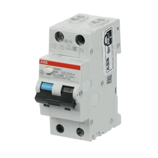 ABB - DS201 Residual Current Circuit Breaker with Overcurrent Protection INT.DIFF.MAGN.6KA 1P+N B32 30MA A30 DS201B32A30