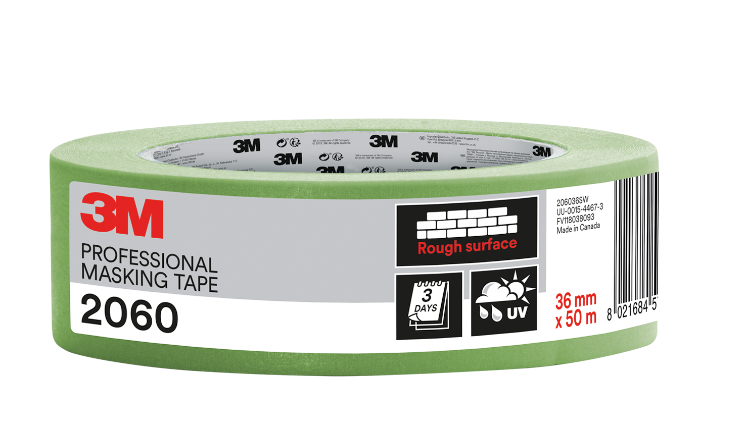 Il nastro di mascheratura professionale 3M™ 2060 è ideale per mascherature di superfici ruvide come cemento e legno. Per ottenere forte adesione alle superfici ruvide, utilizza il nastro di mascheratura professionale 3M™ 2060. Questo nastro di mascheratura professionale è ideale per superfici con scarsa aderenza come cemento e legno nudo. Il nastro aderisce perfettamente in ambienti interni ed esterni e può essere rimosso senza residui dopo 3 giorni.