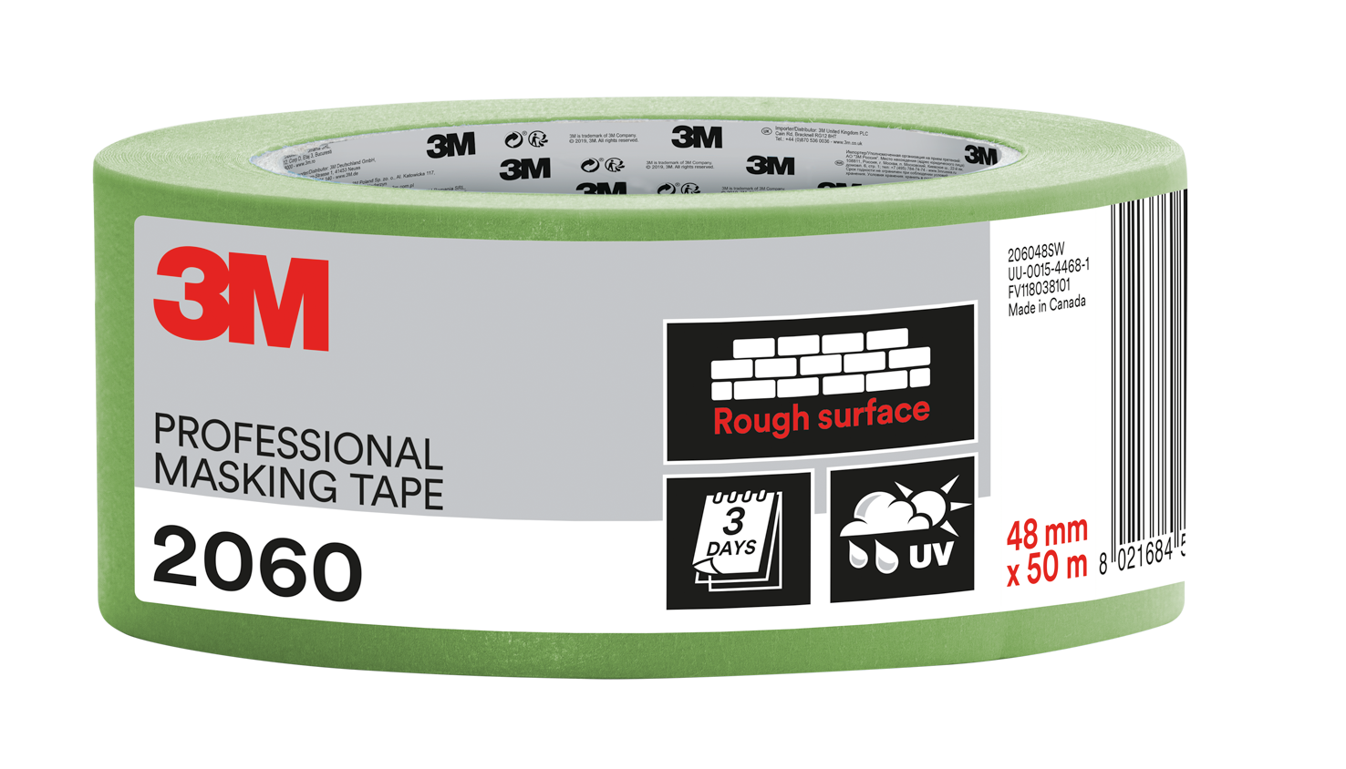 Il nastro di mascheratura professionale 3M™ 2060 è ideale per mascherature di superfici ruvide come cemento e legno. Per ottenere forte adesione alle superfici ruvide, utilizza il nastro di mascheratura professionale 3M™ 2060. Questo nastro di mascheratura professionale è ideale per superfici con scarsa aderenza come cemento e legno nudo. Il nastro aderisce perfettamente in ambienti interni ed esterni e può essere rimosso senza residui dopo 3 giorni.