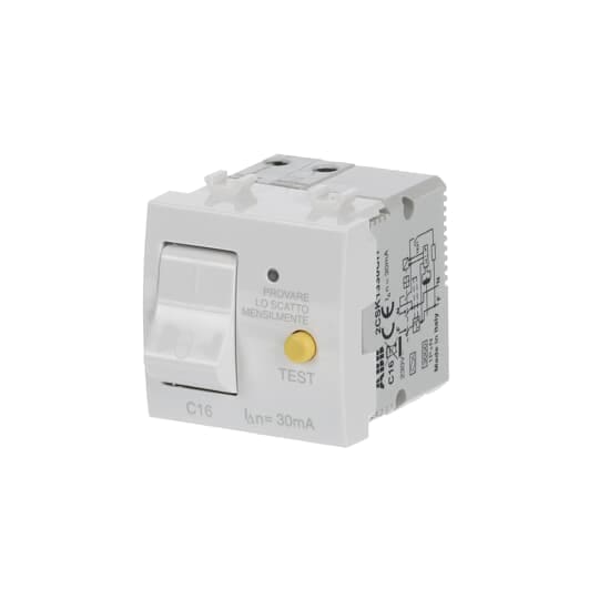 ABB - Automatic RCD, 1P+N, C16 - 30 mA, breaking capacity 3kA 10 mA White - Chiara INT. AUT. DIFF. 1P+N, C6, 16A, 30MA 2CSK1330CH