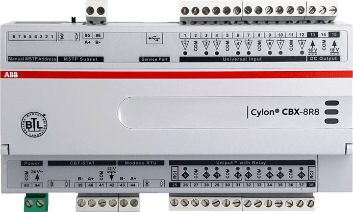 ABB - CBX-8R8 B-AAC: 16 I/O 4 Modbus Devices (40 Modbus Points) CONTROL PRINCIPALE BACNET MSTP. 2CQG201003R1021