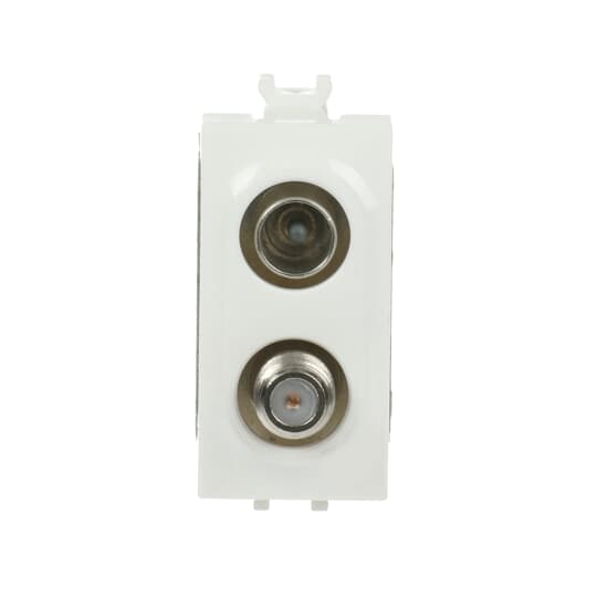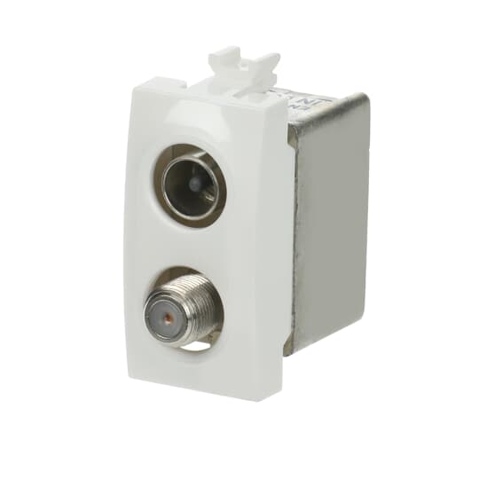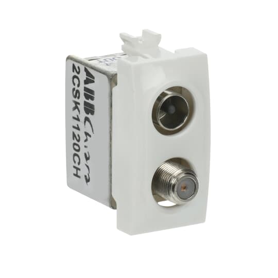 ABB - Double demixed TV/SAT coaxial socket, feedthrough, male IEC connector ø 9.5 mm and female F connector, attenuation 7dB Loop-through socket White - Chiara PRESA COAX DEMIX PASSANTE, CONN M/F 7DB.