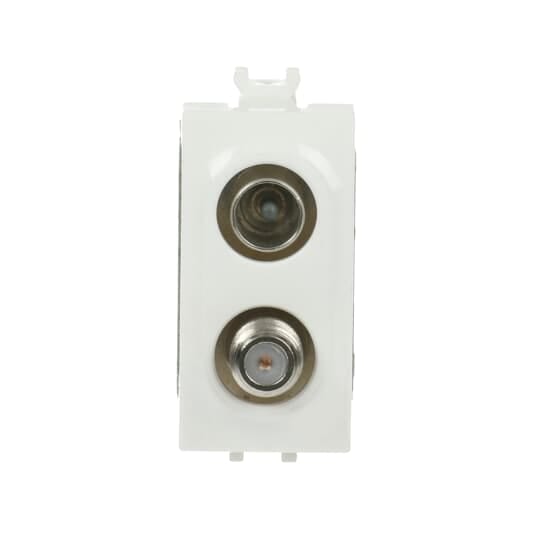 ABB - Double demixed TV/SAT coaxial socket, feedthrough, male IEC connector ø 9.5 mm and female F connector, attenuation 7dB Loop-through socket White - Chiara PRESA COAX DEMIX PASSANTE, CONN M/F 7DB. 2CSK1120CH