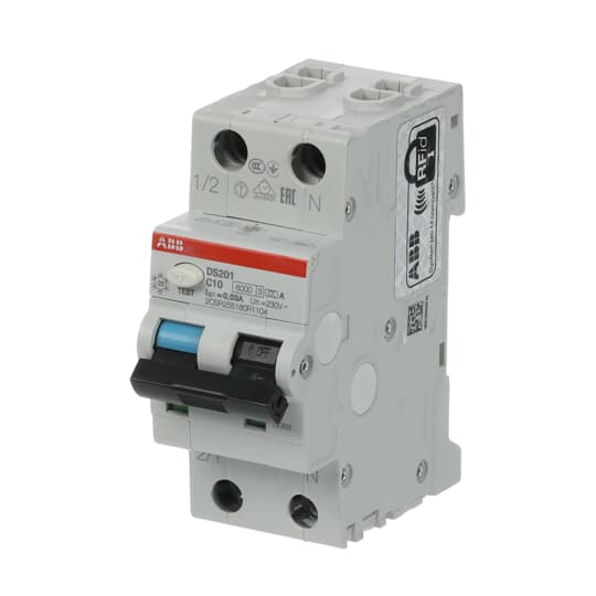 ABB - DS201 C10 A30 Residual Current Circuit Breaker with Overcurrent Protection INT.DIFF.MAGN.6KA 1P+N 30MA DS201C10A30
