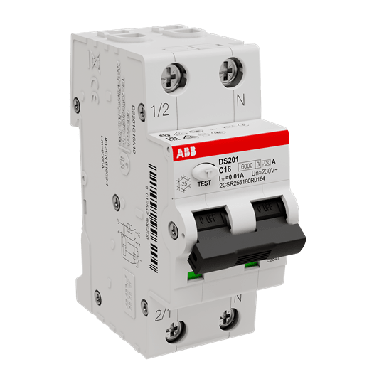 ABB - DS201 C16 A10 Residual Current Circuit Breaker with Overcurrent Protection INT.DIFF.MAGN.6KA 1P+N 10MA DS201C16A10
