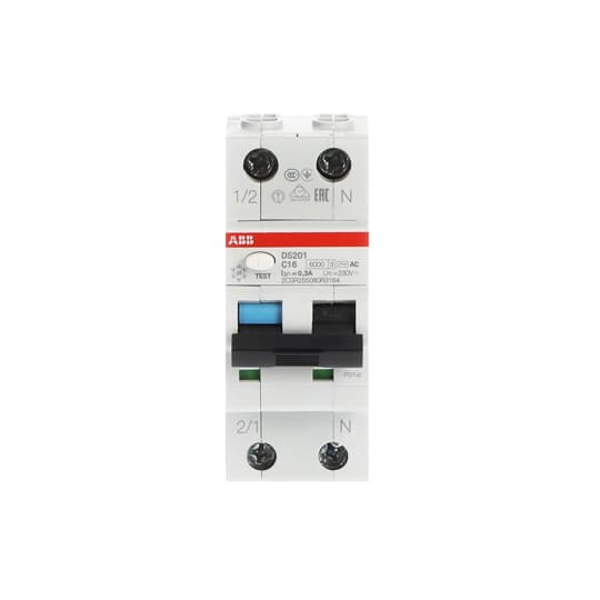 ABB - DS201 C16 AC300 Residual Current Circuit Breaker with Overcurrent Protection INT.DIFF.MAGN.6KA 1P+N 300M DS201C16AC300