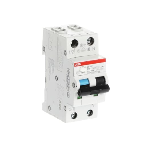 ABB - DS201 C16 AC300 Residual Current Circuit Breaker with Overcurrent Protection INT.DIFF.MAGN.6KA 1P+N 300M DS201C16AC300