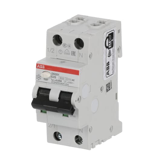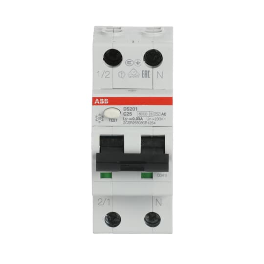ABB - DS201 C25 AC30 Residual Current Circuit Breaker with Overcurrent Protection INT.DIFF.MAGN.6KA 1P+N 30MA