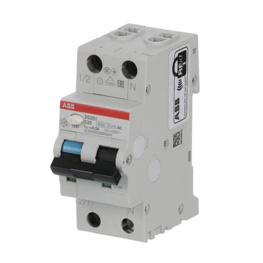 ABB - DS201 C32 AC300 Residual Current Circuit Breaker with Overcurrent Protection INT.DIFF.MAGN.6KA 1P+N 300M DS201C32AC300