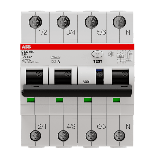 ABB - DS203NC B20 A30 Residual Current Circuit Breaker with Overcurrent Protection DIFF MAG 6 KA 3P+N 30MA DS3NB20A30