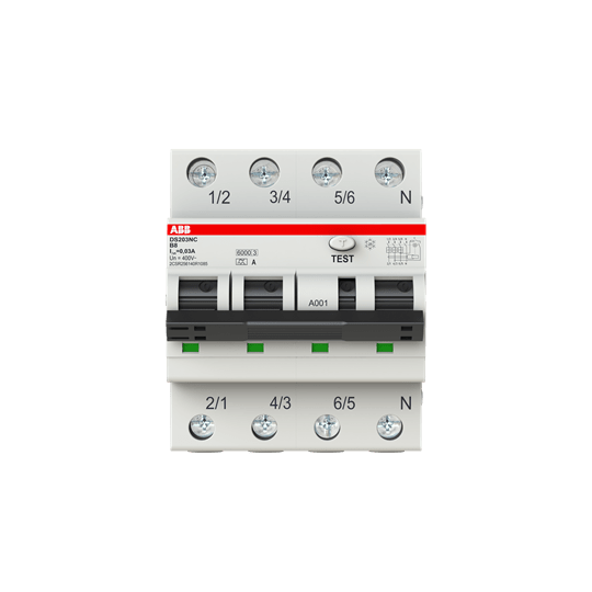ABB - DS203NC B8 A30 Residual Current Circuit Breaker with Overcurrent Protection DIFF MAG 6 KA 3P+N 30MA