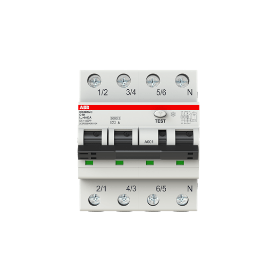 ABB - DS203NC C10 A30 Residual Current Circuit Breaker with Overcurrent Protection DIFF MAG 6 KA 3P+N 30MA. DS3NC10A30
