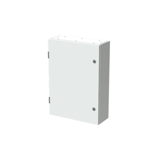 Cassa con porta cieca e piastra di fondo serie sr2, struttura in lamiera d'acciaio spessore 12/10, piastra di fondo in lamiera zincata spessore 20/10. utilizzata per la realizzazione di quadri di comando e controllo delle più varie macchine industriali: da grossi macchinari a linee automatizzate di produzione o parti di esse, alle tipiche installazioni di quadri bordo macchina, a caldaie, impianti di riscaldamento ed altro ancora.