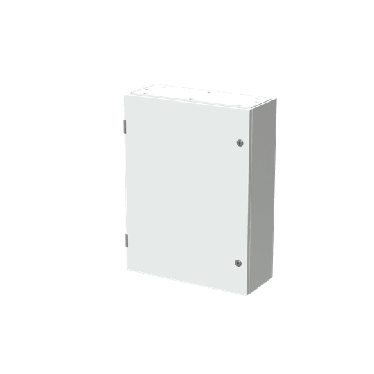 Cassa con porta cieca e piastra di fondo serie sr2, struttura in lamiera d'acciaio spessore 12/10, piastra di fondo in lamiera zincata spessore 20/10. utilizzata per la realizzazione di quadri di comando e controllo delle più varie macchine industriali: da grossi macchinari a linee automatizzate di produzione o parti di esse, alle tipiche installazioni di quadri bordo macchina, a caldaie, impianti di riscaldamento ed altro ancora. consente anche la realizzazione di quadri di distribuzione secondaria grazie alla possibilità di installare tutta la gamma di apparecchi e interruttori modulari su guide din abbinate ad appositi pannelli frontali modulari preforati e incernierati.