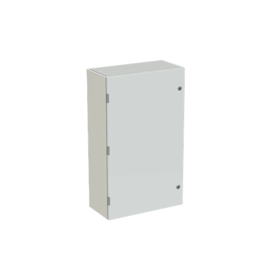 Cassa con porta cieca e piastra di fondo serie sr2, struttura in lamiera d'acciaio spessore 12/10, piastra di fondo in lamiera zincata spessore 20/10. utilizzata per la realizzazione di quadri di comando e controllo delle più varie macchine industriali: da grossi macchinari a linee automatizzate di produzione o parti di esse, alle tipiche installazioni di quadri bordo macchina, a caldaie, impianti di riscaldamento ed altro ancora. consente anche la realizzazione di quadri di distribuzione secondaria grazie alla possibilità di installare tutta la gamma di apparecchi e interruttori modulari su guide din abbinate ad appositi pannelli frontali modulari preforati e incernierati.