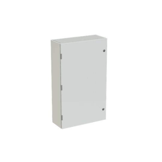 Cassa con porta cieca e piastra di fondo serie sr2, struttura in lamiera d'acciaio spessore 12/10, piastra di fondo in lamiera zincata spessore 20/10. utilizzata per la realizzazione di quadri di comando e controllo delle più varie macchine industriali: da grossi macchinari a linee automatizzate di produzione o parti di esse, alle tipiche installazioni di quadri bordo macchina, a caldaie, impianti di riscaldamento ed altro ancora. consente anche la realizzazione di quadri di distribuzione secondaria grazie alla possibilità di installare tutta la gamma di apparecchi e interruttori modulari su guide din abbinate ad appositi pannelli frontali modulari preforati e incernierati.