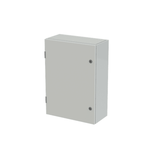 Cassa con porta cieca e piastra di fondo serie sr2, struttura in lamiera d'acciaio spessore 12/10, piastra di fondo in lamiera zincata spessore 20/10. utilizzata per la realizzazione di quadri di comando e controllo delle più varie macchine industriali: da grossi macchinari a linee automatizzate di produzione o parti di esse, alle tipiche installazioni di quadri bordo macchina, a caldaie, impianti di riscaldamento ed altro ancora.