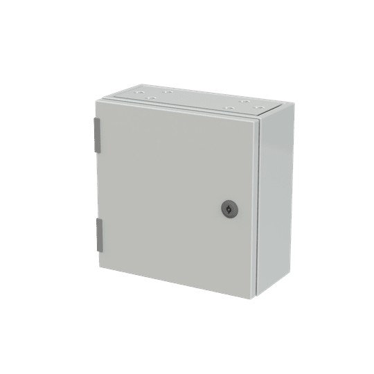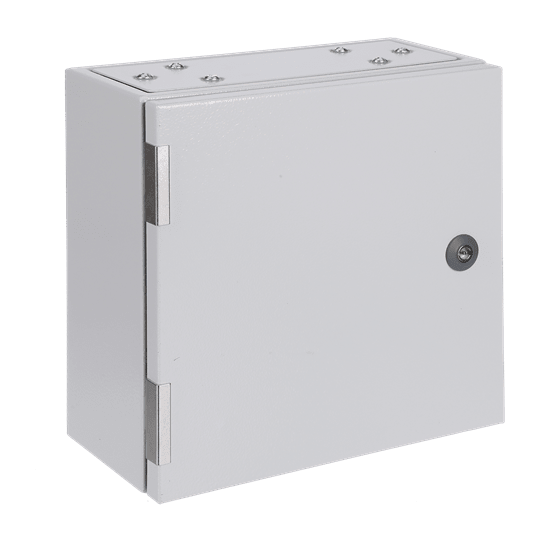 Cassa con porta cieca e piastra di fondo serie sr2, struttura in lamiera d'acciaio spessore 12/10, piastra di fondo in lamiera zincata spessore 20/10. utilizzata per la realizzazione di quadri di comando e controllo delle più varie macchine industriali: da grossi macchinari a linee automatizzate di produzione o parti di esse, alle tipiche installazioni di quadri bordo macchina, a caldaie, impianti di riscaldamento ed altro ancora.