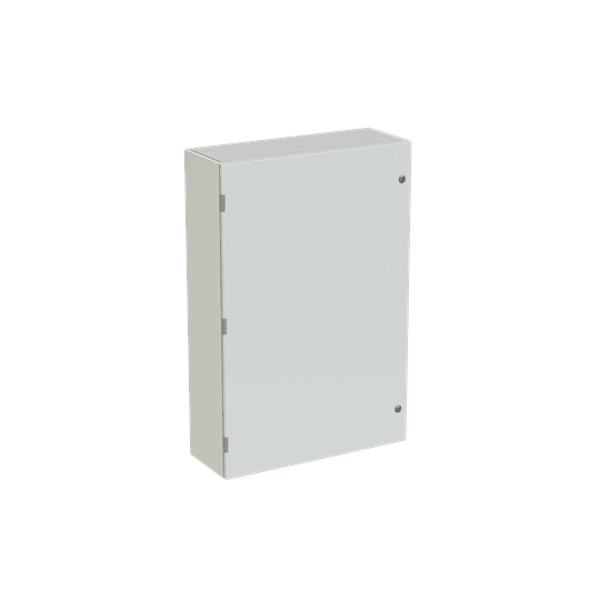 Cassa con porta cieca e piastra di fondo serie sr2, struttura in lamiera d'acciaio spessore 12/10, piastra di fondo in lamiera zincata spessore 20/10. utilizzata per la realizzazione di quadri di comando e controllo delle più varie macchine industriali: da grossi macchinari a linee automatizzate di produzione o parti di esse, alle tipiche installazioni di quadri bordo macchina, a caldaie, impianti di riscaldamento ed altro ancora. consente anche la realizzazione di quadri di distribuzione secondaria grazie alla possibilità di installare tutta la gamma di apparecchi e interruttori modulari su guide din abbinate ad appositi pannelli frontali modulari preforati e incernierati.