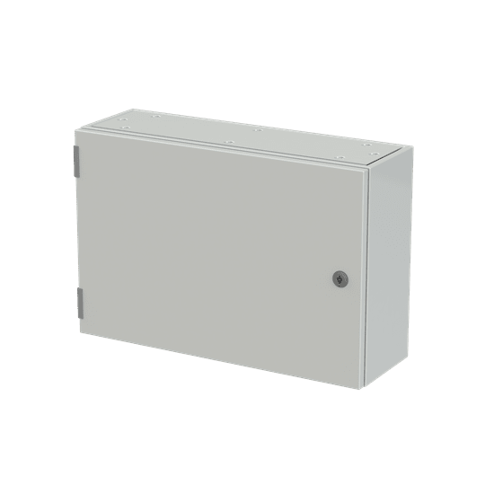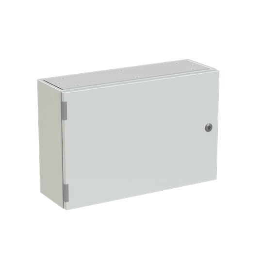 Cassa con porta cieca e piastra di fondo serie sr2, struttura in lamiera d'acciaio spessore 12/10, piastra di fondo in lamiera zincata spessore 20/10. utilizzata per la realizzazione di quadri di comando e controllo delle più varie macchine industriali: da grossi macchinari a linee automatizzate di produzione o parti di esse, alle tipiche installazioni di quadri bordo macchina, a caldaie, impianti di riscaldamento ed altro ancora. consente anche la realizzazione di quadri di distribuzione secondaria grazie alla possibilità di installare tutta la gamma di apparecchi e interruttori modulari su guide din abbinate ad appositi pannelli frontali modulari preforati e incernierati.