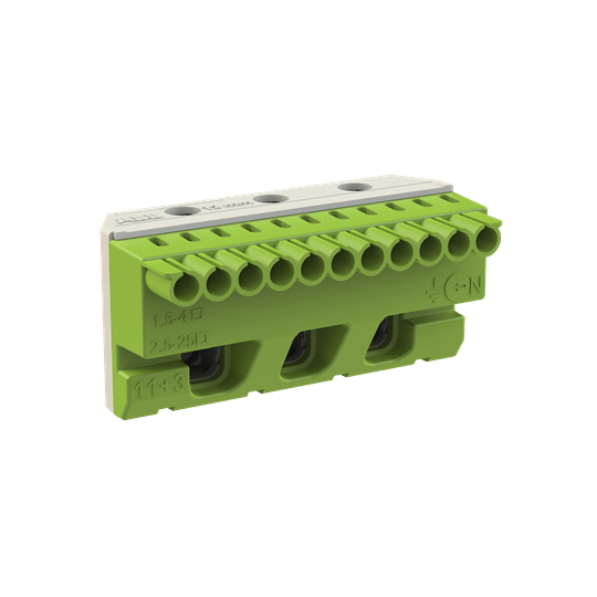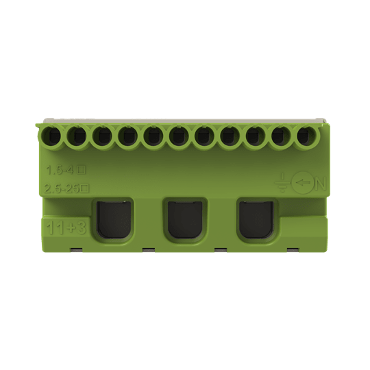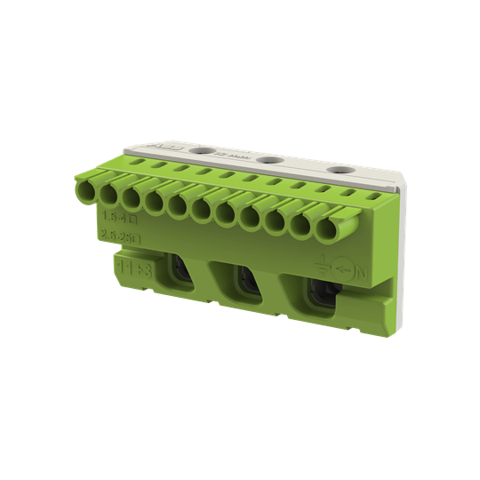 ABB - Morsetto rapido verde 3x25mm² + 11x4mm² PE senza viti, 63A. 1SPE007715F9714