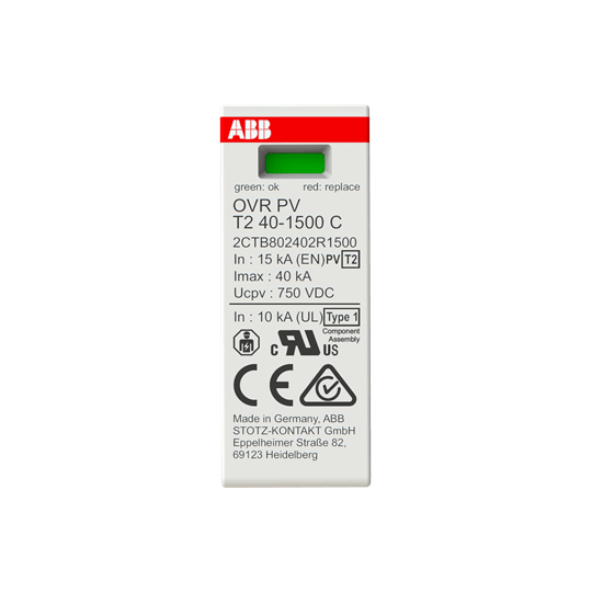ABB - OVR PV T2 40-1500 C: ideale per installazioni elettriche fino a 1500V. Adatto a varie applicazioni industriali e residenziali.