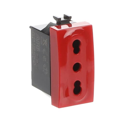ABB - Presa Bivalente 2P+T, 10/16A, 250V~, Tipo P17/P11, Rossa Senza Impronta Bipasso Italiano - Chiara.