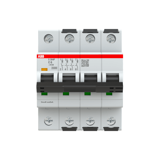 ABB - S304P-C6 Miniature Circuit Breaker 25KA 4 AUTOMATIC SWITCH S304PC6