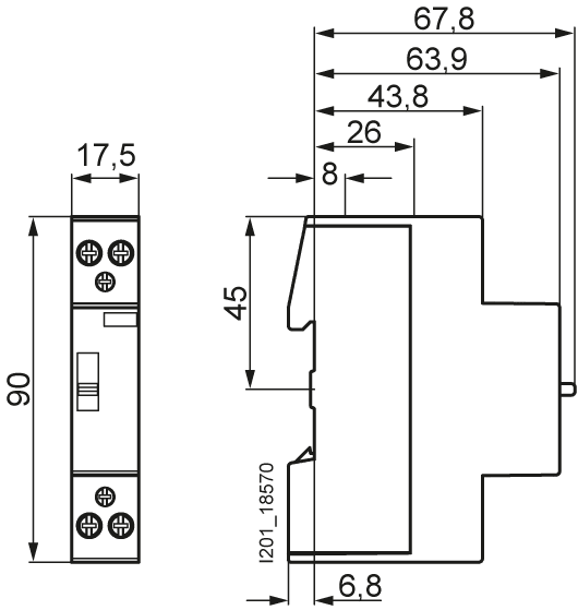 SIEMENS - Contattore INSTA 0/1-automatico con 1 contatto NO e 1 contatto NC, contatto per AC 230 V 5TT50018