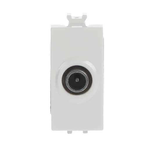 ABB - TV/SAT coaxial socket, feedthrough, male IEC connector ø 9.5 mm, attenuation 18dB Loop-through socket White - Chiara PRESA COAX PASSANTE, CONN. MASCHIO, 18DB.