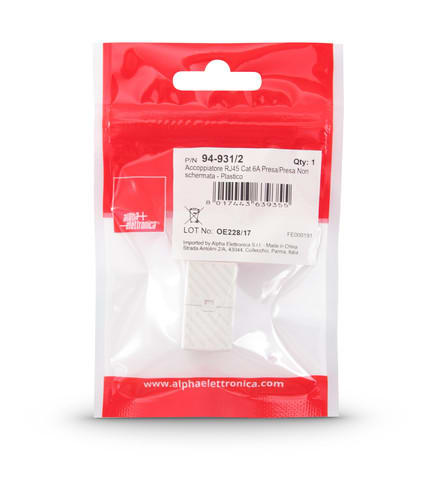ALPHA ELETTRONICA - Accoppiatore RJ45 Cat.6A Presa/Presa Non schermata - Plastico
