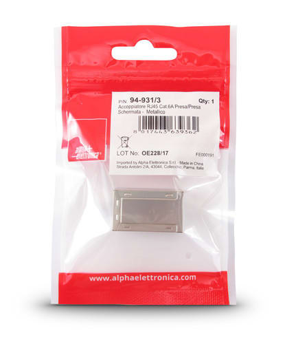 ALPHA ELETTRONICA - Accoppiatore RJ45 Cat.6A Presa/Presa Schermata - Metallico 94-931/3