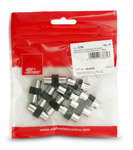 ALPHA ELETTRONICA - Adattatore coassiale da presa Ø9,5mm a presa Ø9,5mm - Nero 57N