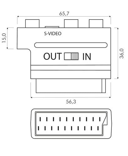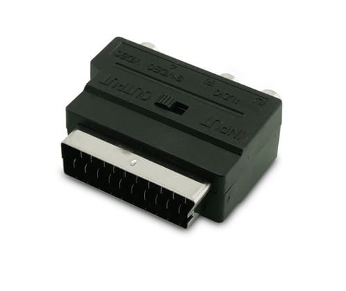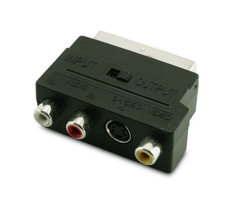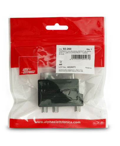 ALPHA ELETTRONICA - Adattatore con deviatore IN/OUT da spina scart 21 poli a 3 prese RCA + 1 presa S-VHS 92-260