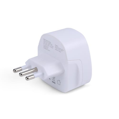 Adattatore da viaggio con spiana Italia per paesi come: Italia, Chile, Cuba, Libya, Maldives, San Marino, Syria, Uruguay, Vaticano e altro.