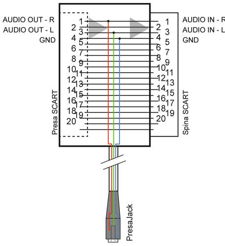 - Presa Jack collegata sui pin 1 e 3 delle SCART