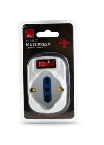 ALPHA ELETTRONICA - Adattatore da spina 3 poli 16A girevole a 1 presa Universale Italia P40 e 2 Italia bipasso 10-16A - Con interruttore luminoso