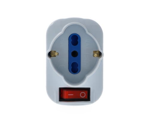 ALPHA ELETTRONICA - Adattatore da spina 3 poli 16A girevole a 1 presa Universale Italia P40 e 2 Italia bipasso 10-16A - Con interruttore luminoso