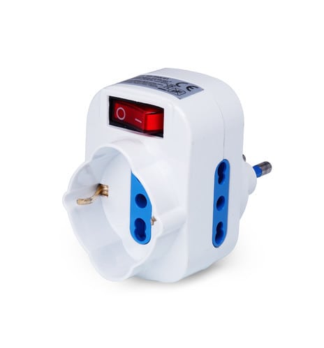 ALPHA ELETTRONICA - Adattatore da spina 3 poli 16A girevole a 1 presa Universale Italia P40 e 2 Italia bipasso 10-16A - Con interruttore luminoso 23-045/01