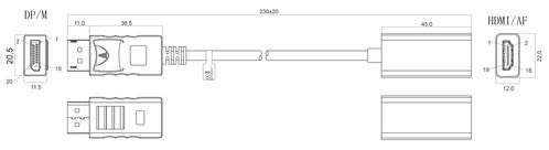 ALPHA ELETTRONICA - Adattatore da Spina Display-port a Presa HDMI® - Cavetto - Pigtail 93-621/002B