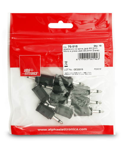 ALPHA ELETTRONICA - Adattatore da spina Jack Ø3,5mm Mono a presa Jack Ø3,5mm Stereo 70-010