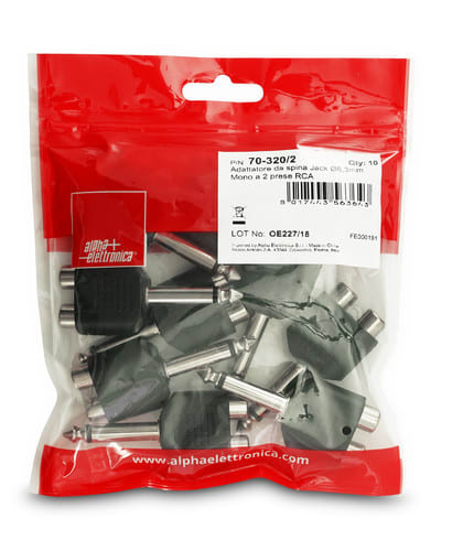 ALPHA ELETTRONICA - Adattatore da spina Jack Ø6,3mm Mono a 2 prese RCA 70-320/2