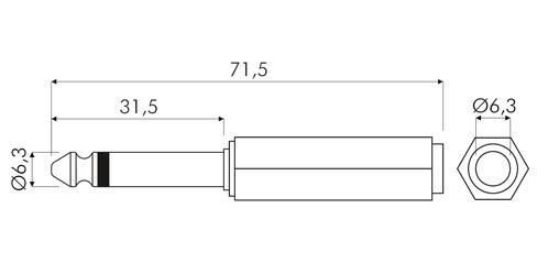 ALPHA ELETTRONICA - Adattatore da spina Jack Ø6,3mm Mono a presa Jack Ø6,3mm Stereo 70-316