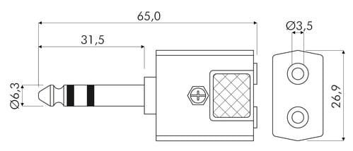 ALPHA ELETTRONICA - Adattatore da spina Ø6,3mm Stereo a 2 prese Ø3,5mm Stereo 70-440