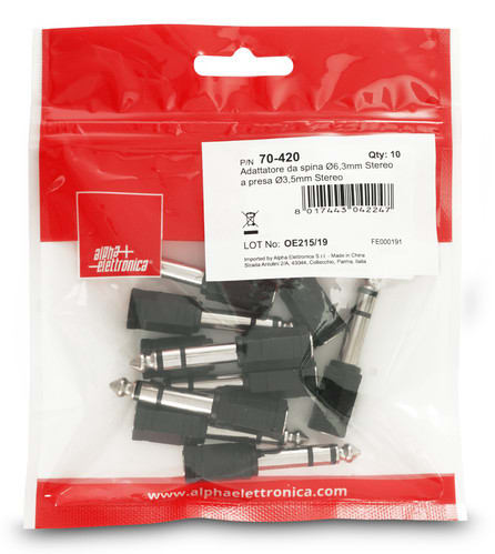 ALPHA ELETTRONICA - Adattatore da spina Ø6,3mm Stereo a presa Ø3,5mm Stereo 70-420
