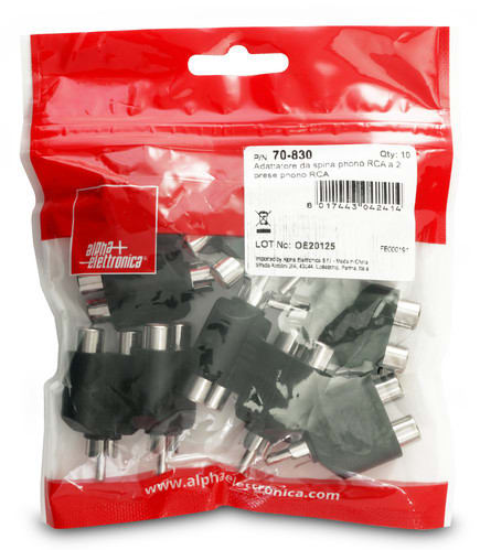 ALPHA ELETTRONICA - Adattatore da spina phono RCA a 2 prese phono RCA 70-830