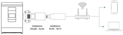 -Dimensioni PxLxA: 63x19x10mm (adattatore WiFi). 57x34x22mm (adattatore da RS485 a RJ45).