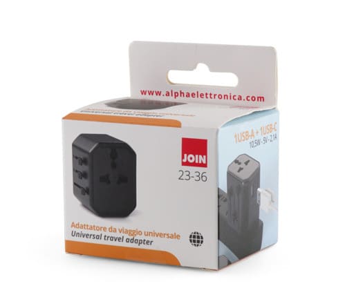 ALPHA ELETTRONICA - Adattatore universale con presa di ricarica USB-A e USB-C 2,1A max 23-36