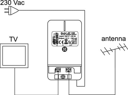 ALPHA ELETTRONICA - Alimentatore per amplificatore antenna - 12Vdc 200mA - Con Led AT200/LED