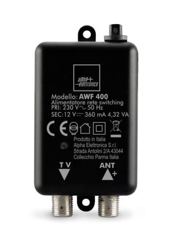 ALPHA ELETTRONICA - Alimentatore per amplificatore antenna - 12Vdc 360mA - Con connettori F